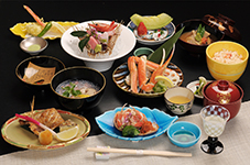 越前がにフルコース19,900円~ 地魚海鮮コース8,300円~ ※価格は全て1泊2食(1名様)、税別 ☎0776-82-1010 住所/坂井市三国町宿3-5-21 アクセス/北陸自動車道「金津IC」から車で約20分 営業時間/チェックイン15:00・チェックアウト10:00 駐車場/10台 施設/和8室、天然(加水あり・加温あり・循環ろ過式)温泉浴場、貸切風呂、自家船「栄帆丸」