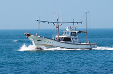 ご主人が自家船「栄帆丸」で魚を釣り上げる