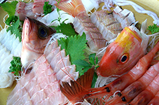 贅沢に味わえる宿 一本釣りにこだわるご主人が宿の船「栄帆丸」で沖に出て釣り上げる、鮮度抜群の魚料理が堪能できる「民宿なかじま」。宿では三国港産・越前ガニ(11月~3月)のほか、ご主人が自ら釣った魚を捌いてくれるので、ピチピチの鮮魚がたっぷり味わえる。高級な天然地魚も自前の舟で調達できるからこその太っ腹。また潮の香りがする三国温泉は、美肌の湯としても知られている。