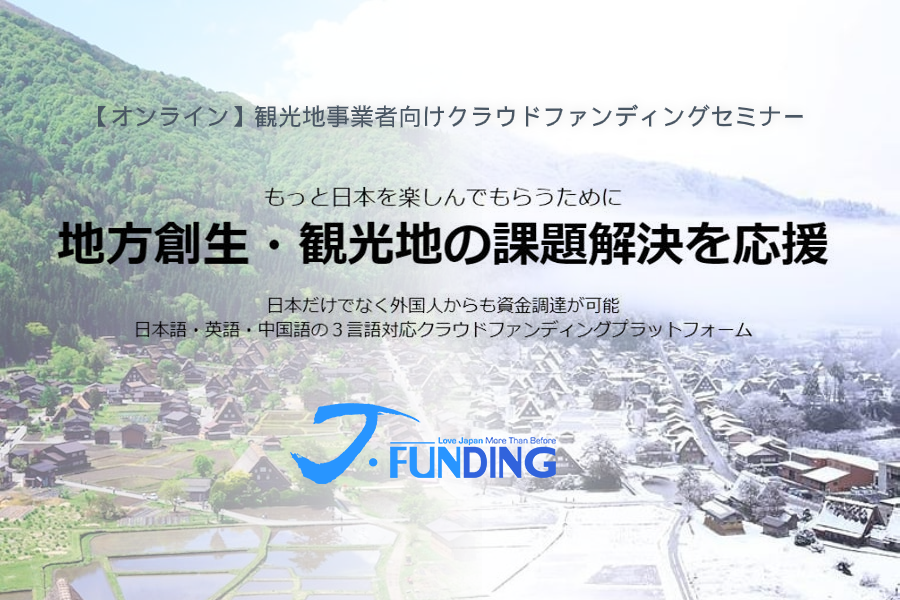 「JAPANKURU FUNDING(通称:J・FUNDING)」のセミナー(オンライン形式)を実施する運びとなりました。ぜひ、観光事業者様(自治体、ホテル旅館、物産、道の駅、日帰り温泉、レジャー施設、ファーム、農園)様にご参画頂きたく存じます。