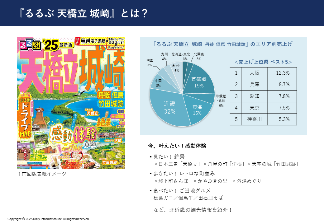 日本三景に数えられる「天橋立」、浴衣の似合う温泉地「城崎温泉」、天空の城で話題となった「竹田城跡」、城下町と里山風景が魅力の「丹波篠山」など、北近畿の人気エリアを大特集!各エリアのみどころはもちろん、グルメ、ショッピング、温泉宿などの情報もしっかり網羅しています。
