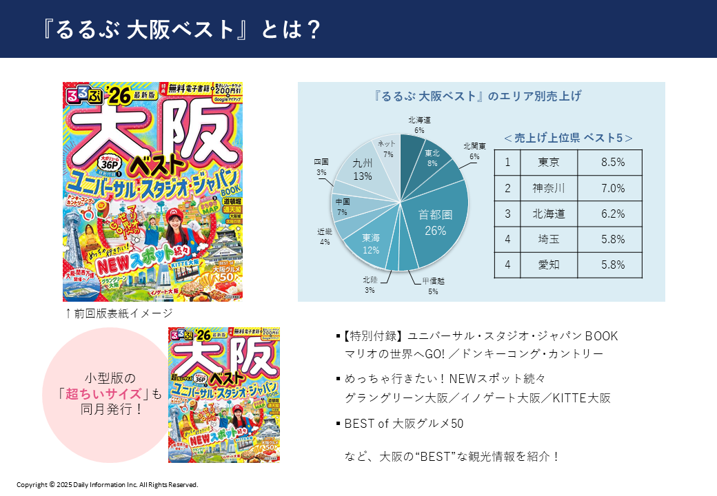大阪の魅力を凝縮した、大阪旅行に欠かせない一冊!ユニバーサル・スタジオ・ジャパンBOOK付きで、広告出稿を考えている企業や施設にとって、効果的なプロモーションの場として最適です。