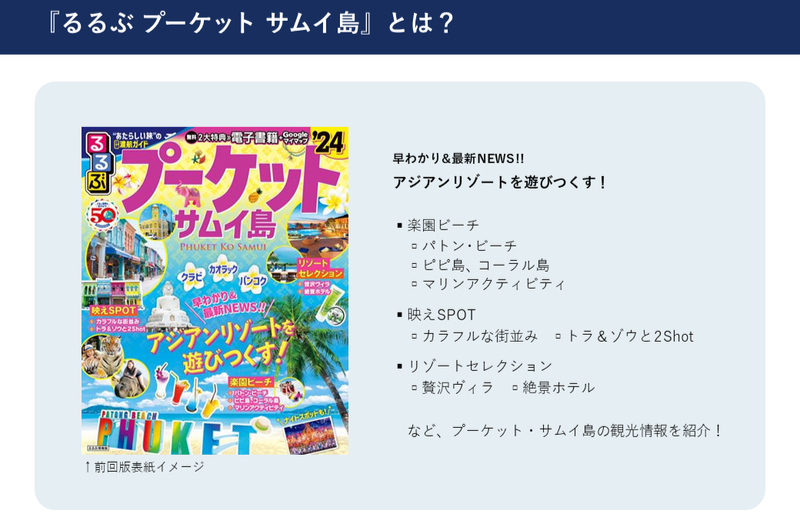『るるぶプーケット・サムイ島』の主な特集内容を紹介しています。