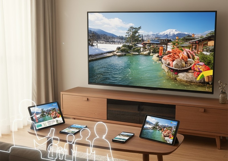テレビの大画面で、家族や友人と一緒に視聴されるシーンが増えており、これは観光地や宿泊施設の魅力を伝える上で絶好の環境と言えます。