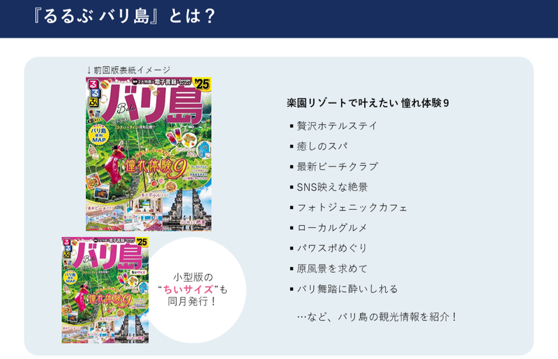 『るるぶ バリ島』の主な特集内容を紹介しています。