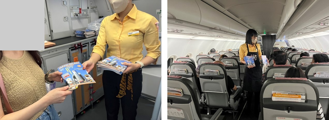 ・流通:台湾(桃園空港・高雄空港)から成田・羽田空港へ向かうタイガーエア国際線機内にてキャビンクルーから手渡し配布